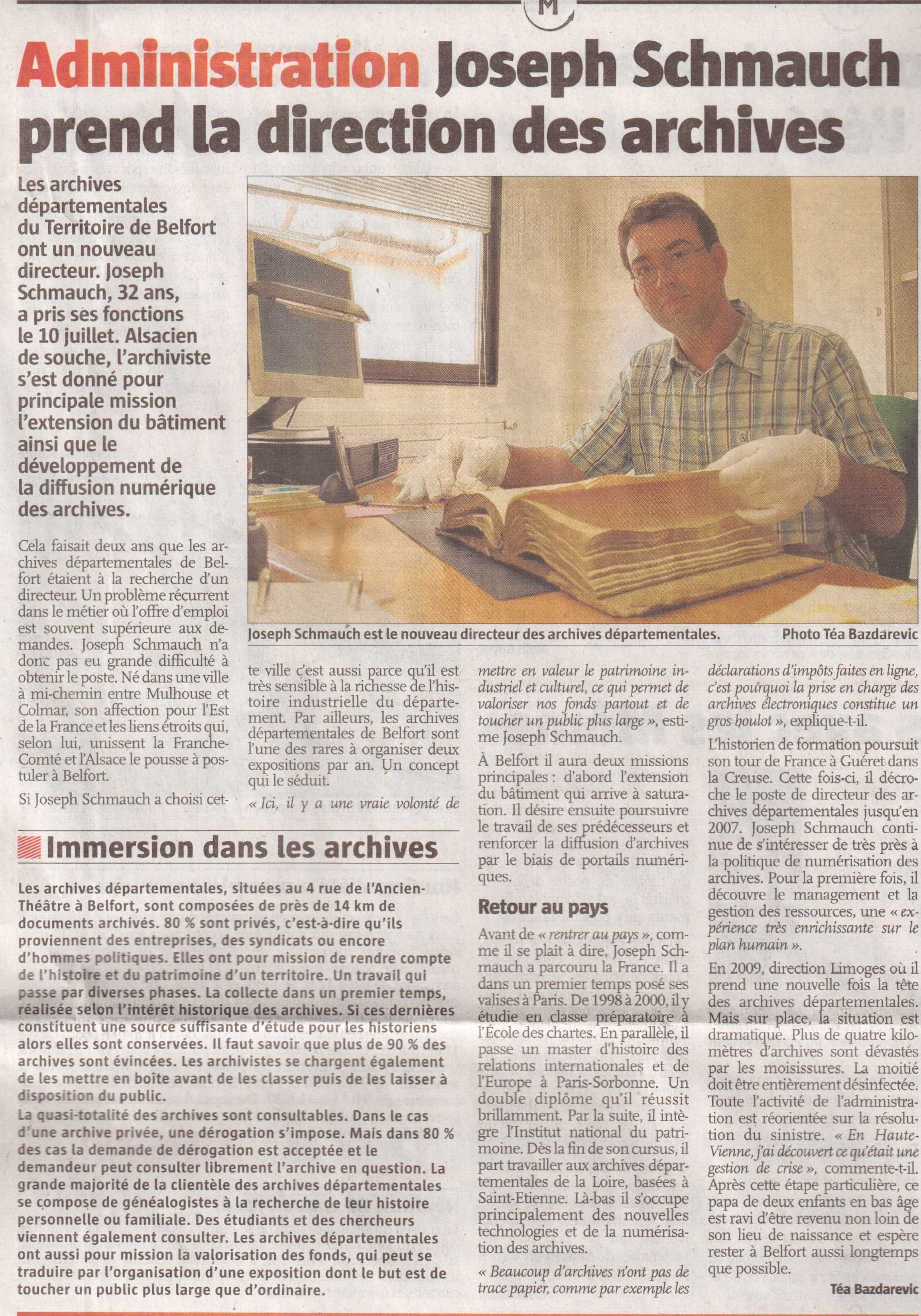 BELFORT : Joseph Schmauch prend la direction des archives |