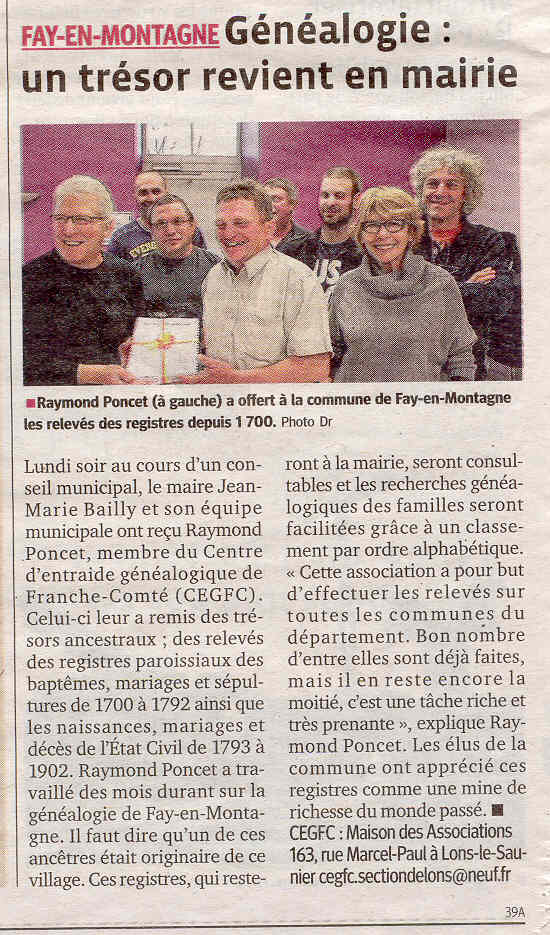 FAY-EN-MONTAGNE : Généalogie : un trésor revient en mairie - photo |