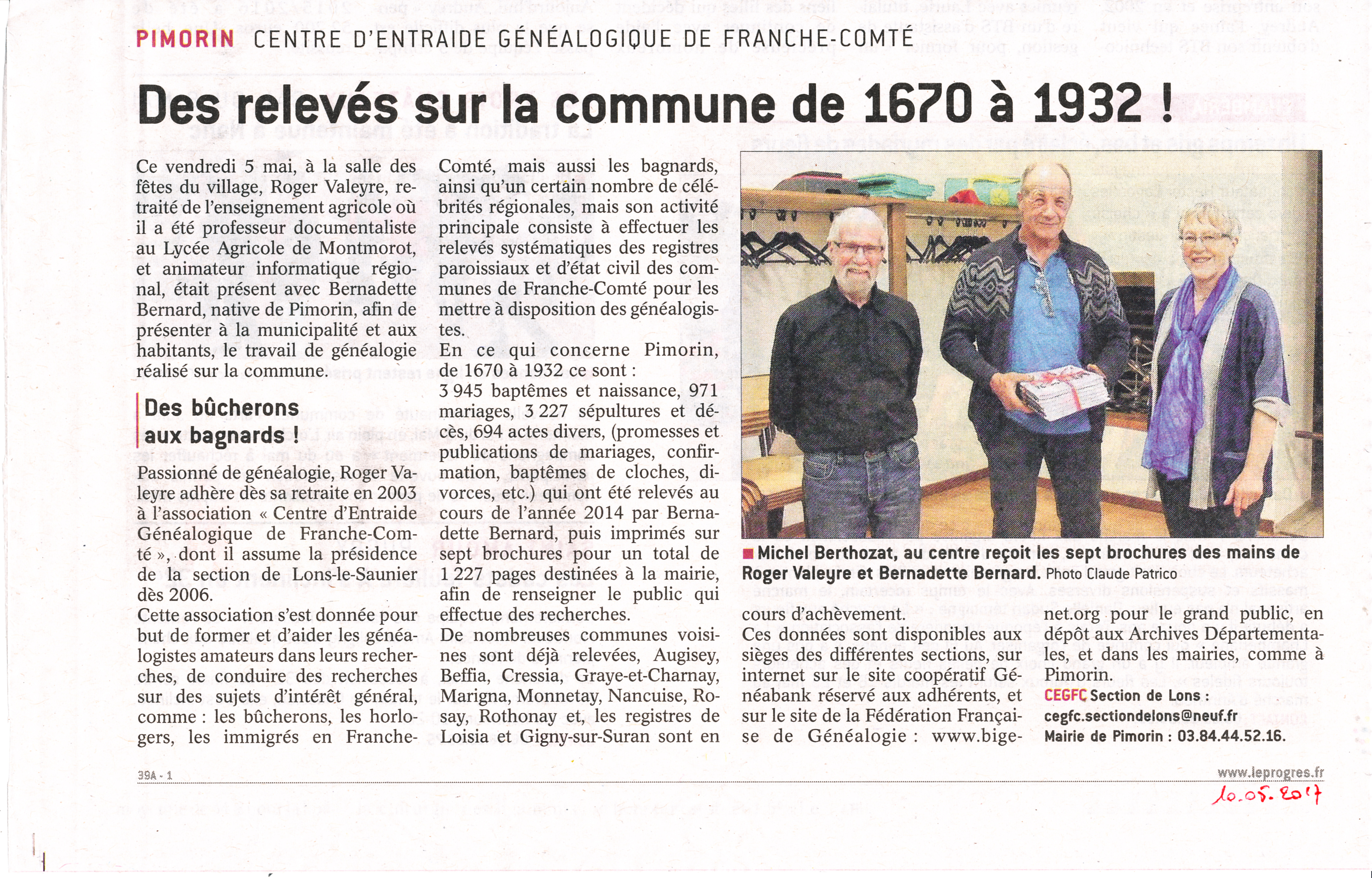 PIMORIN : Des relevés sur la commune de 1670 à 1932 ! |