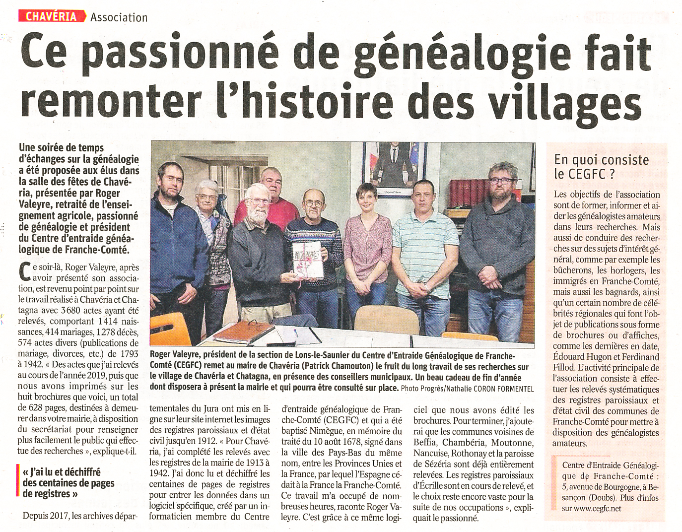 CHAVÉRIA : Généalogie : Roger Valeyre a présenté les travaux réalisés sur la commune |