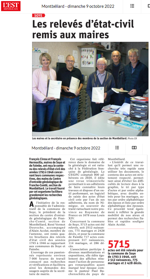 SOYE-FAIMBE : Remise des relevés d'état-civil 1793-1946 (09/10/2022) |