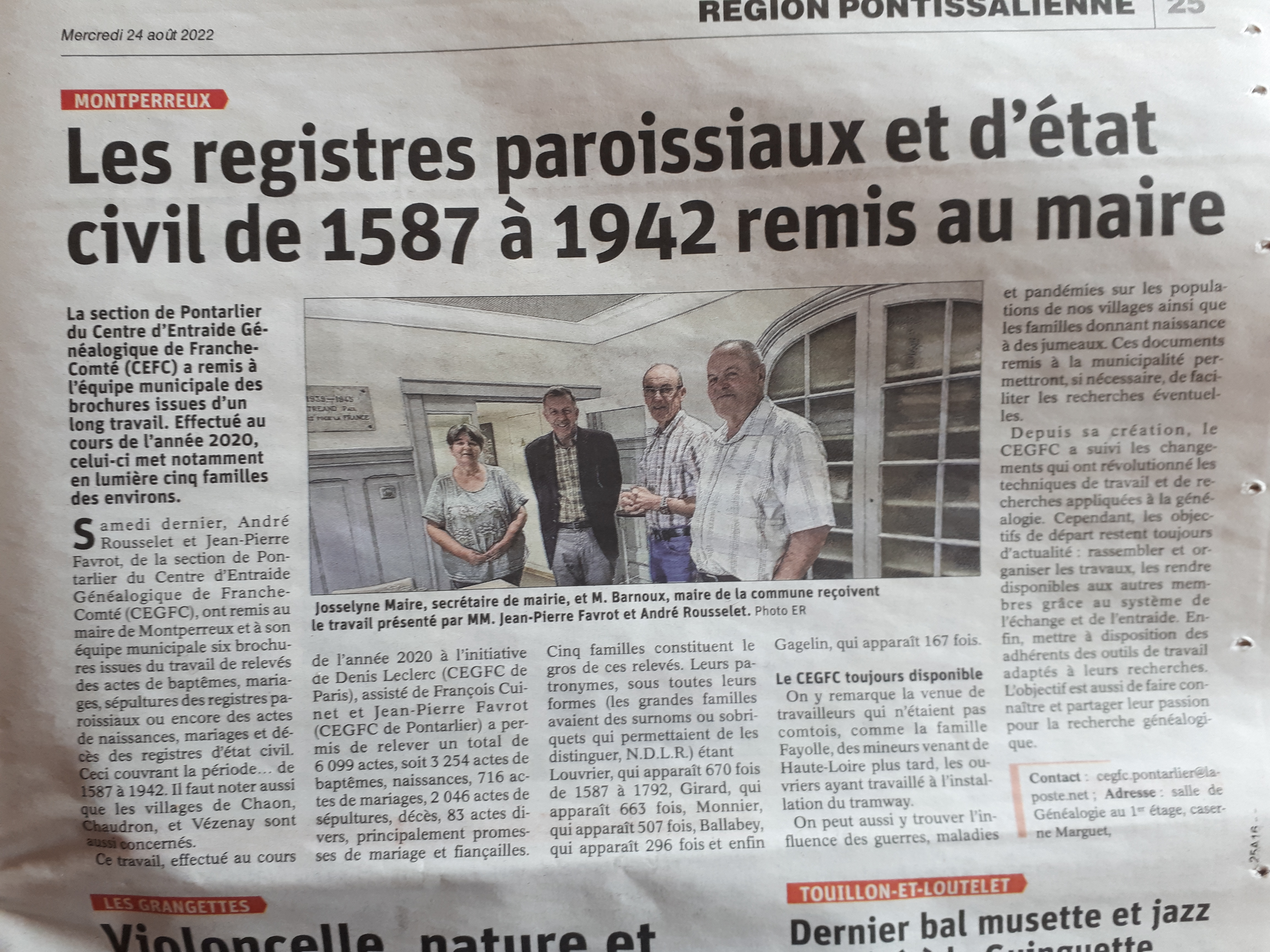 MONTPERREUX : Remise des registres parossiaux et d'état-civil de 1587 à 1942 (24/08/022) |