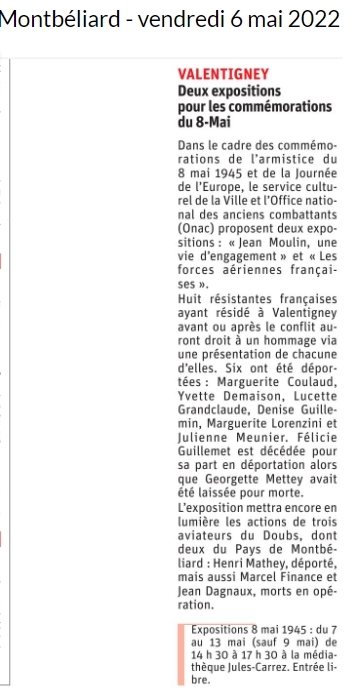 VALENTIGNEY : Deux expositions pour les commémorations du 8 Mai (6/5/2022) |