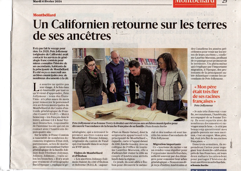 MONTBÉLIARD : Tourisme des racines - Un Californien retourne sur la terre de ses ancêtres (février 2024) |