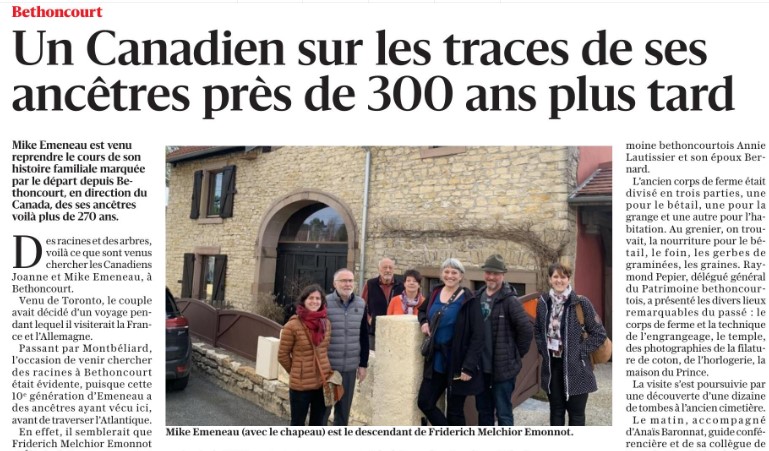 BÉTHONCOURT : Tourisme des racines - Un Canadien revient sur la terre de ses ancêtres (février 2024) |