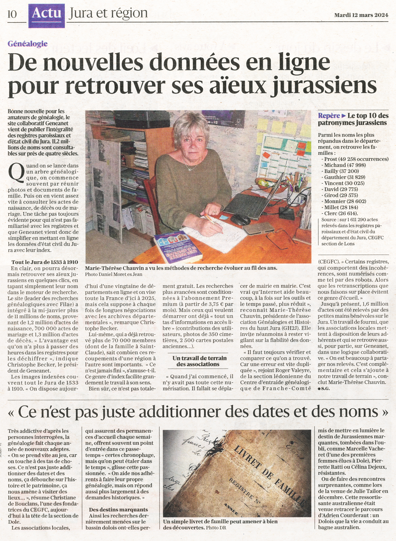 JURA : Au-delà des dates et des noms - Geneanet met en ligne les RP et l'état-civil du Jura (mars 2024) |