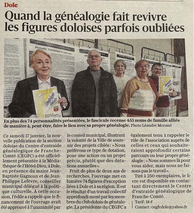 DOLE : Parution Hors-série "Doloises et Dolois célèbres" Présentation à la Médiathèque en présence du maire de Dole et de la presse De gauche à droite : Christiane de Bouclans, Philippe Français, Nadeige Zabotti, Claude Renaudin, Claude Dubois