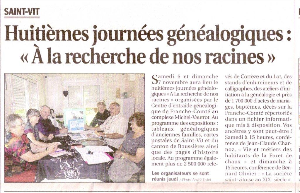 SAINT-VIT : Huitièmes journées généalogiques : À la recherche de nos racines |
