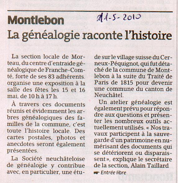 MONTLEBON : La généalogie raconte l'histoire |
