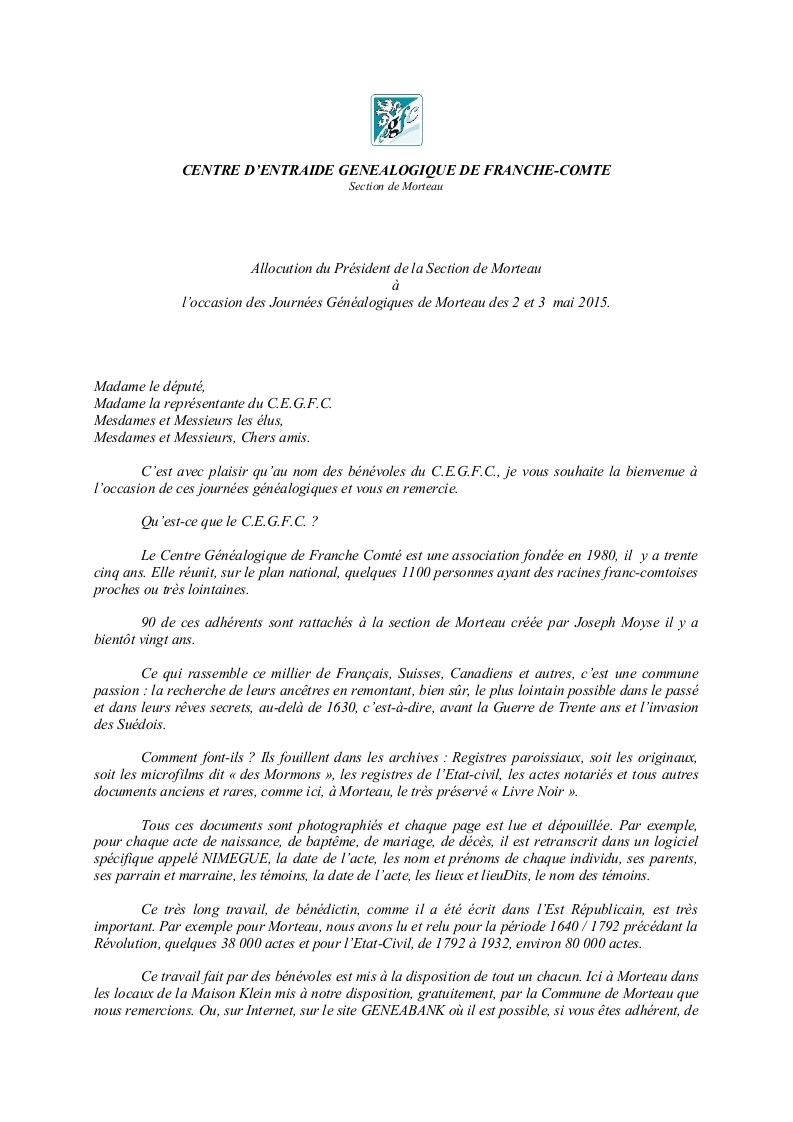 MORTEAU : Assemblée Générale : allocution du Président - photos 1 2 3 4 |