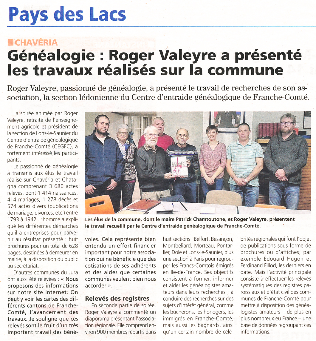 CHAVÉRIA : Généalogie : Roger Valeyre a présenté les travaux réalisés sur la commune |