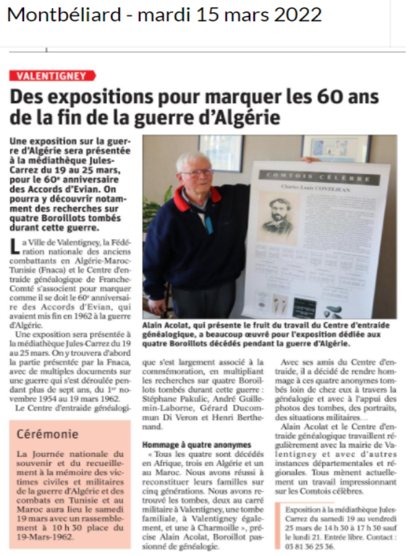 VALENTIGNEY : Des expositions pour marquer les 60 ans de la fin de la guerre d'Algérie (15/3/2022) |