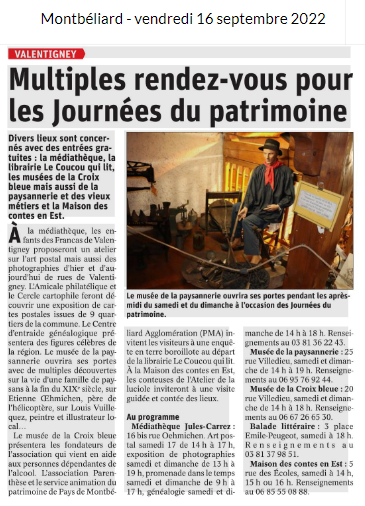 VALENTIGNEY : Les multiples rendez-vous des Journées du Patrimoine 2022 (16/09/022) |