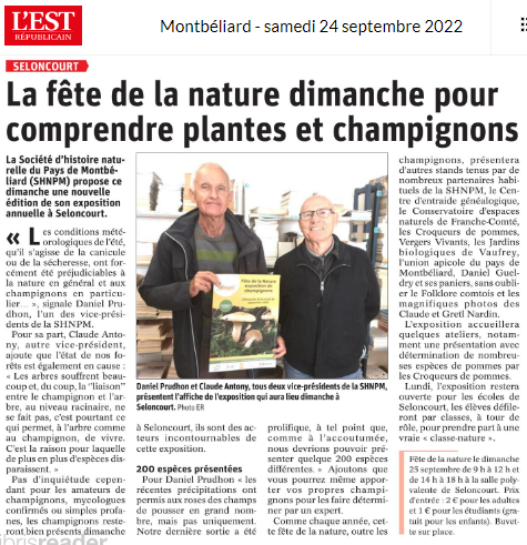 SELONCOURT : Fête de la nature ; présence du CEGFC Montbéliard (24/09/2022) |