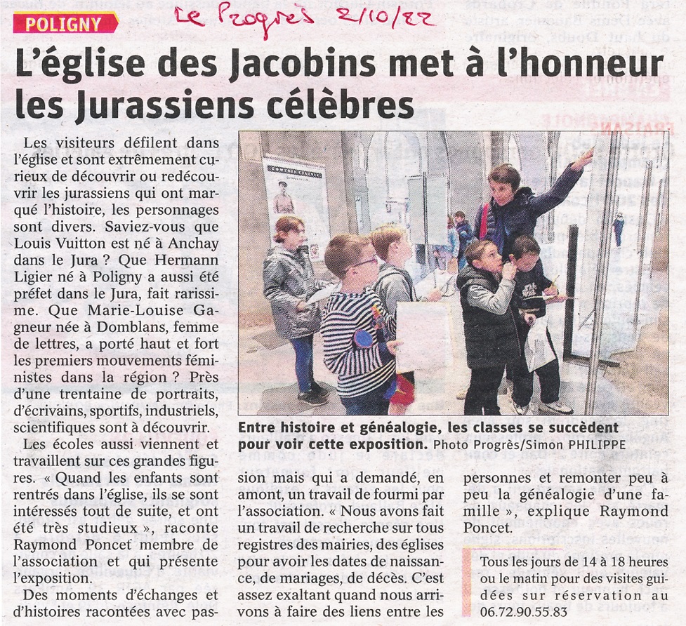 POLIGNY : Jurassiens célèbres ou remarquables aux Jacobins ; CEGFC Lons-le-Saunier (02/10/2022) |