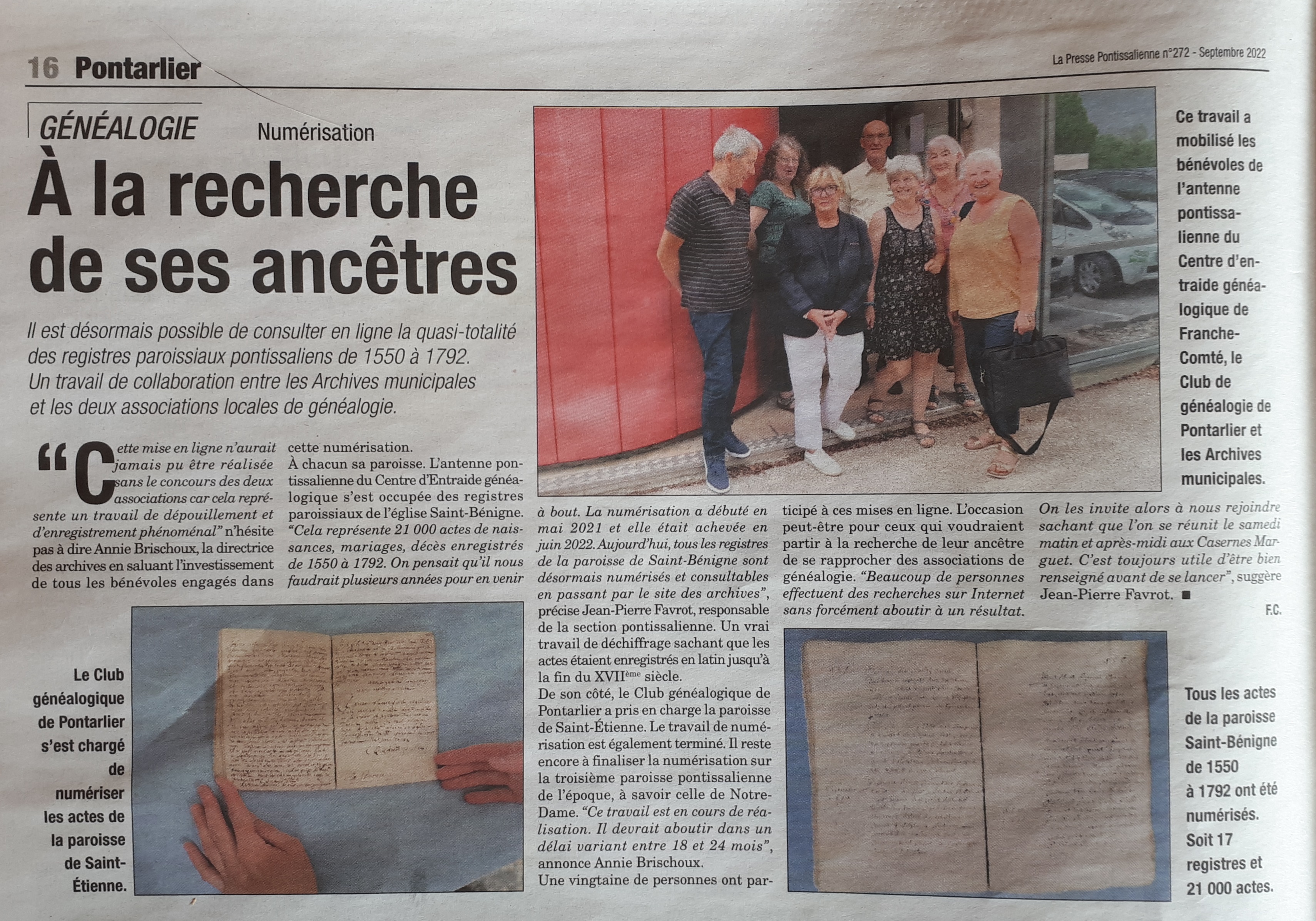 MONTPERREUX : Remise des registres parossiaux et d'état-civil de 1587 à 1942 (24/08/022) |