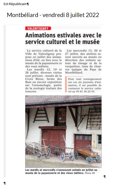 VALENTIGNEY : Animations estivales en lien avec le musée de la paysannerie et des vieux métiers |