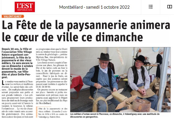 VALENTIGNEY : Fête de la paysannerie 2022 ; présence du CEGFC Montbéliard (01/10/2022) |