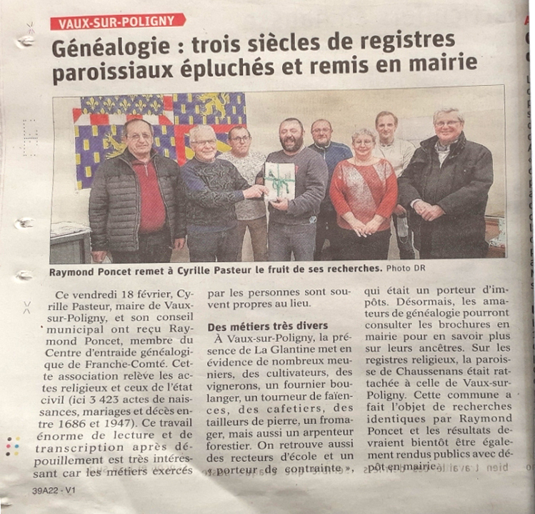 VAUX-SUR-POLIGNY : Généalogie : Trois siècles de regitres paroissiaux épluchés et remis en mairie (21/2/2022) |