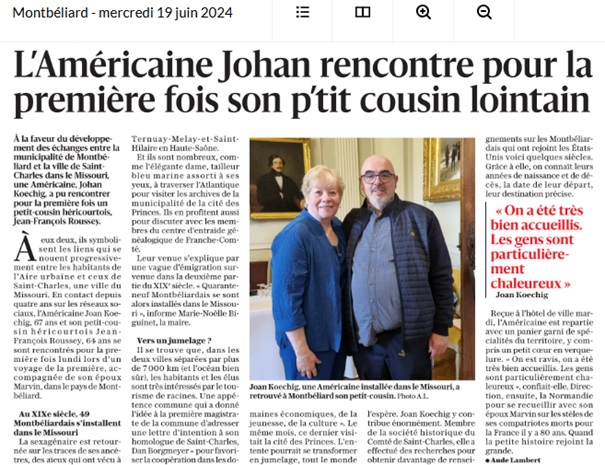 MONTBÉLIARD : Tourisme des racines - Un Californien retourne sur la terre de ses ancêtres (février 2024) |