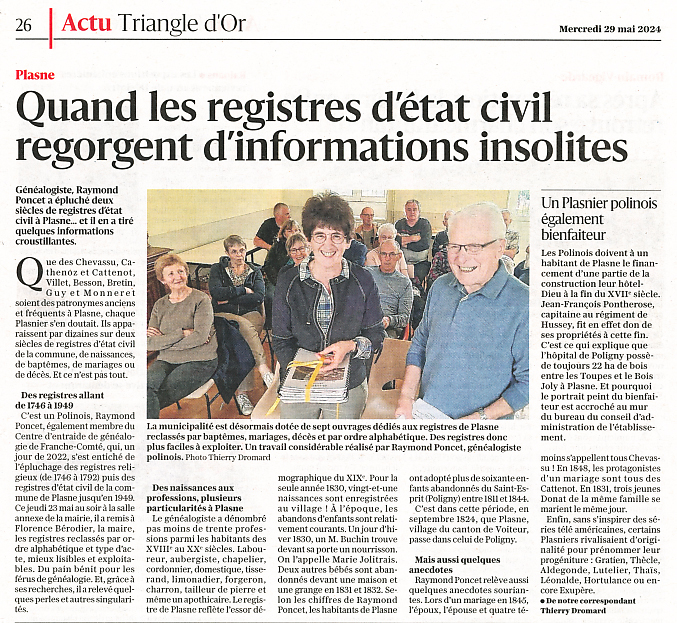 PLASNE : Les informations insolites figurant sur les actes d'état-civil (mai 2024) |
