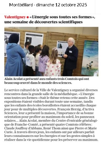 VALENTIGNEY : Participation du CEGFC à la Fête de la science (octobre 2025)
