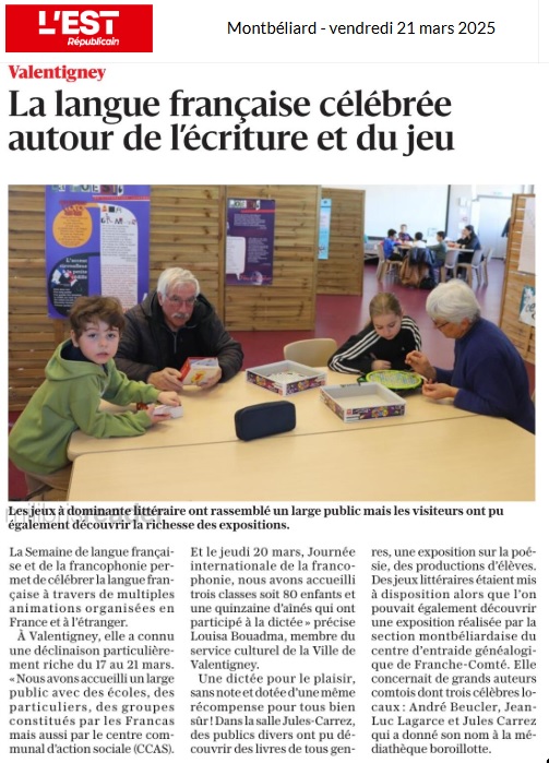 VALENTIGNEY : Participation du CEGFC à la Semaine de la langue française (mars 2025)